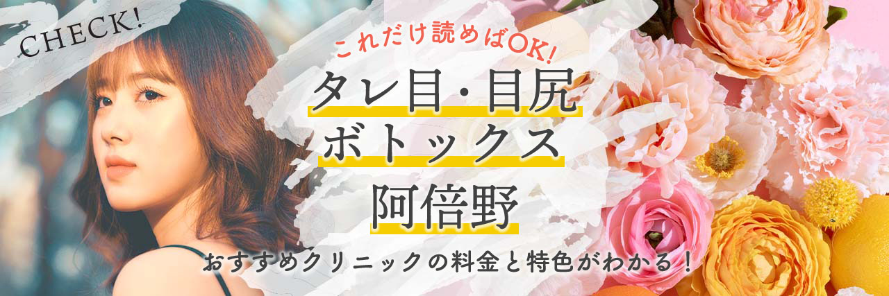 この記事では、そんなタレ目ボトックス・目尻ボトックスを阿倍野のおすすめクリニックから比較できます。