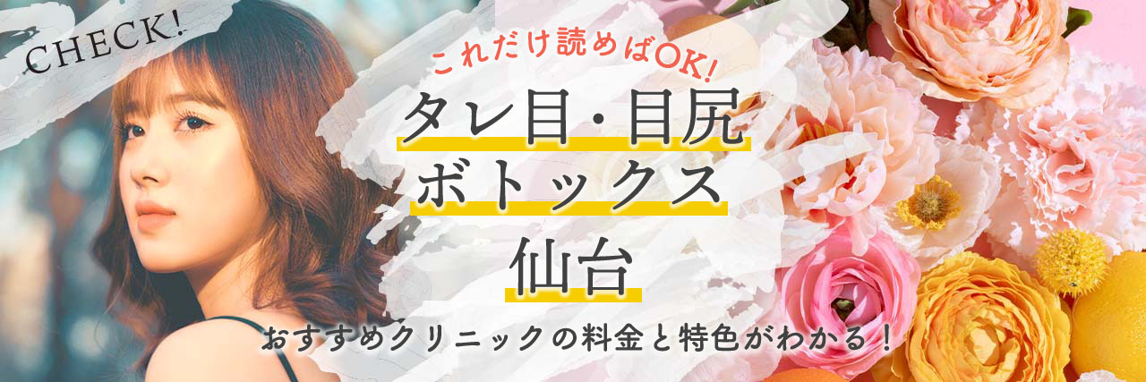 この記事では、そんなタレ目ボトックス・目尻ボトックスを仙台のおすすめクリニックから比較できます。