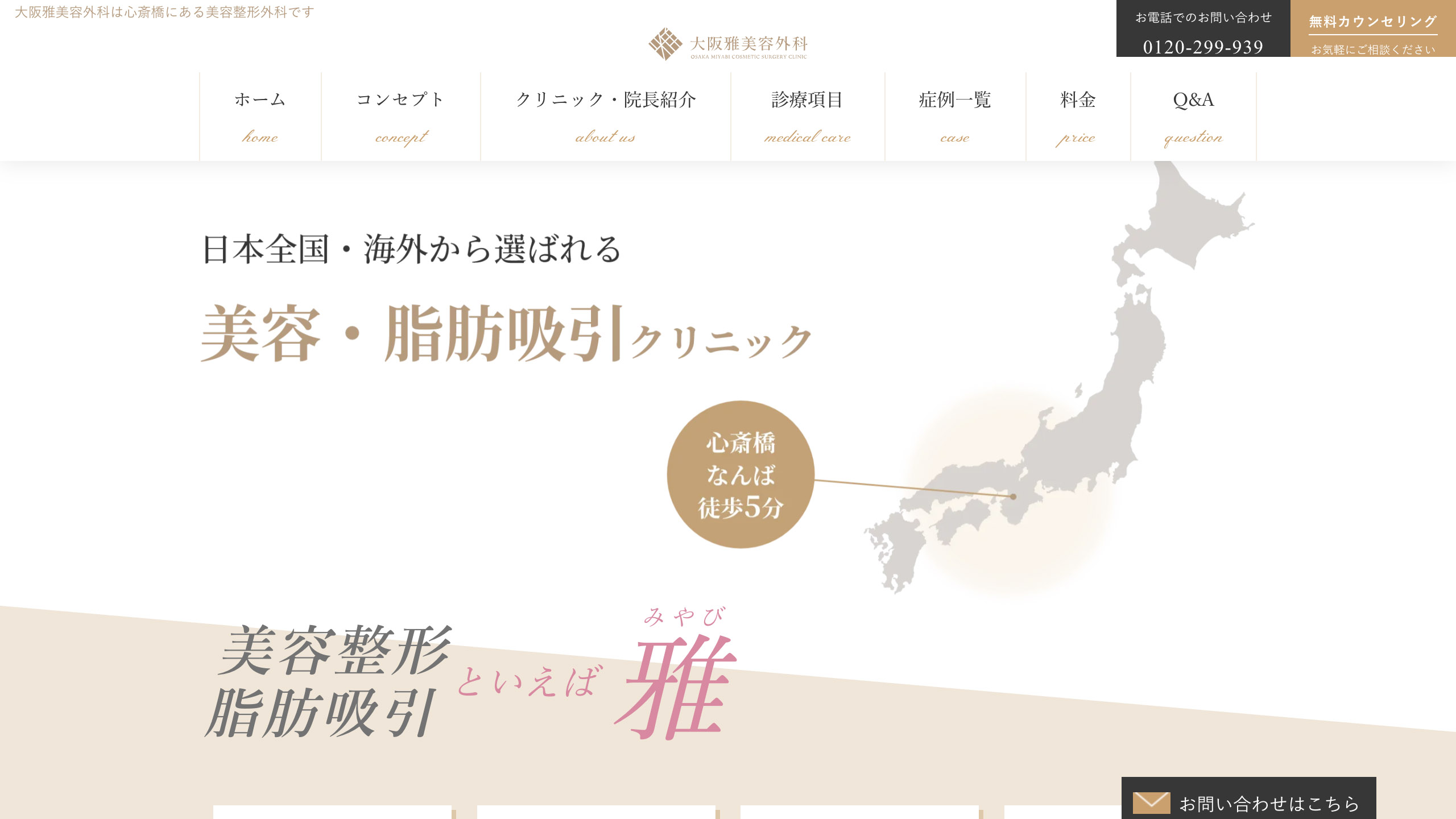 「美容外科は対象が “人” であるからこそ、地域に根ざす必要がある」と話す大阪雅美容外科。地域に密着して、患者と強くつながりたいという理由でアメリカ村横に開院し、10年以上も気軽に相談しやすいクリニックとして診療を続けています。
