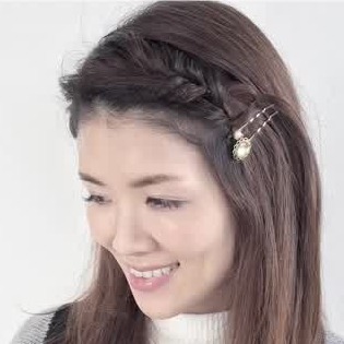 毛先は耳の上でピンで固定します。飾りのついたかわいいピンだとアクセントにもなって◎