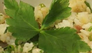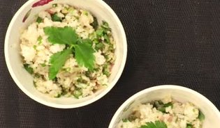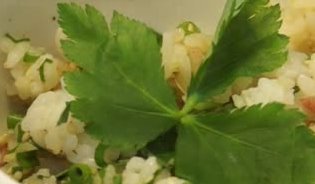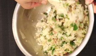 ご飯とみじん切りした薬味を、ボウルに入れましょう。大き目のボウルに入れると混ぜやすいですよ♪