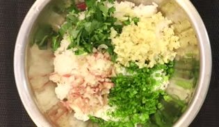 小口ネギ・みょうが・みつば・生姜をみじん切りにします 。