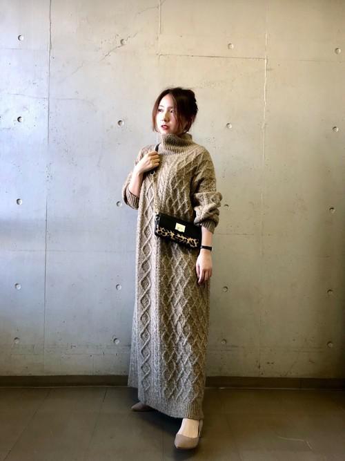 ケーブル編みのニットワンピースは1枚で決まる、秋冬の便利アイテムですよね。パンツやレギンスとのレイヤードもおすすめです。もちろん寒さ対策もばっちり!