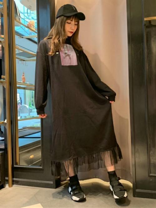 女の子っぽすぎるのはちょっと……という方にはスウェットワンピがおすすめ!カジュアルだけど裾のチュールが程よくフェミニンですよ。
