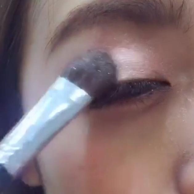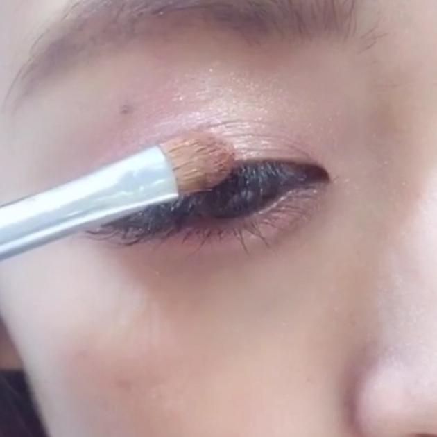 上まぶたにラメをのせ中央から左右にぼかしていきましょう。中心にラメを多くのせると、縦に瞳が大きく見えます!