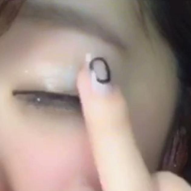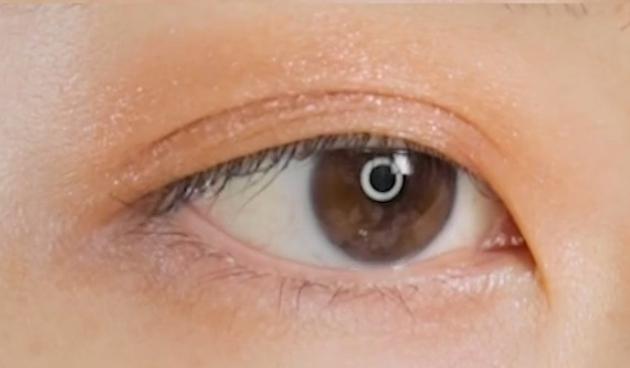 2.「103P」を黒目の上から目尻にかけて塗る