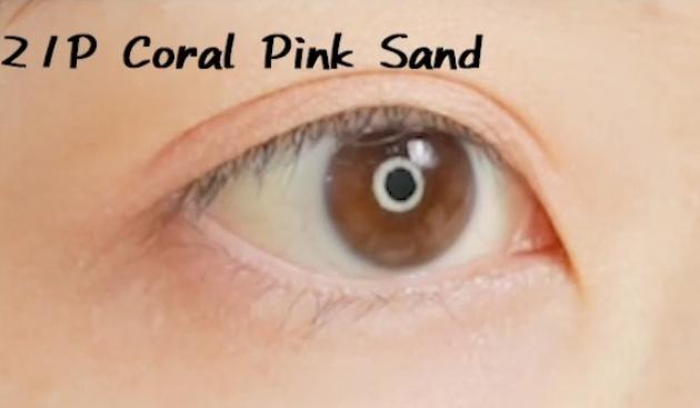 画像上から、ナチュラルヌーディーな仕上がりで使いやすい「021P コーラルピンクサンド」と、大人っぽい深みのある目元に仕上がる「020P ジプシークイーン」です。