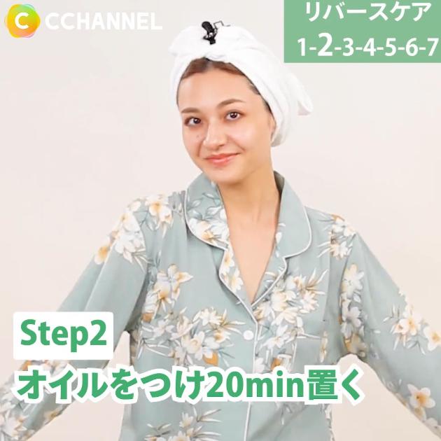 毛先を中心にヘアオイルをつけ、タオルでくるんで20分おきます。