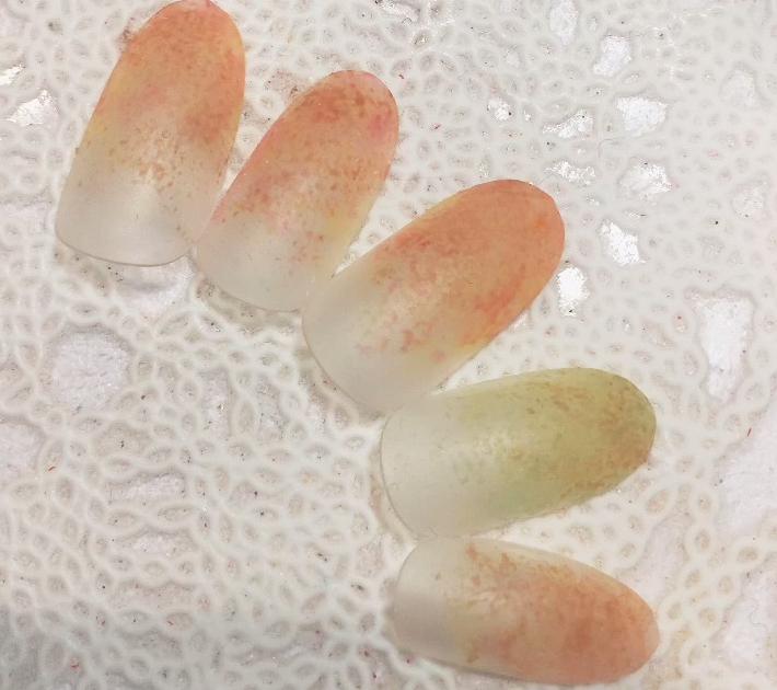 ポリッシュのカラーは色がなじみやすい透過性のないパステルカラーを選ぶとGOOD!グラデーションにするカラーは同系色を選ぶとなじみやくなりますよ。