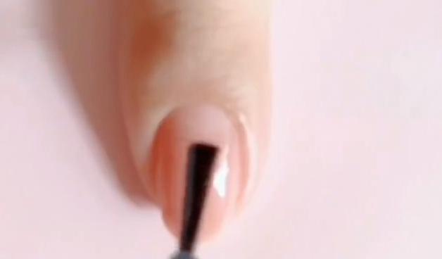 爪を4段階にわけて、ポリッシュを塗っていきます。まず初めは爪先から。爪の4分の1の爪先にポリッシュを塗り、乾かします。そうしたら4分の2の爪先に塗って乾かします!