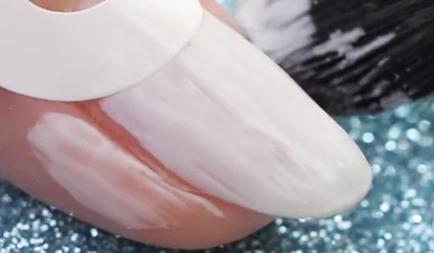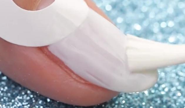 シールを貼れたら白を1度塗りします。シールのおかげで自然とフレンチネイルが完成!