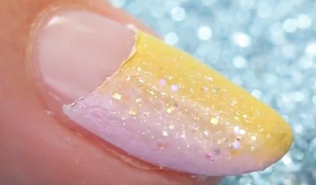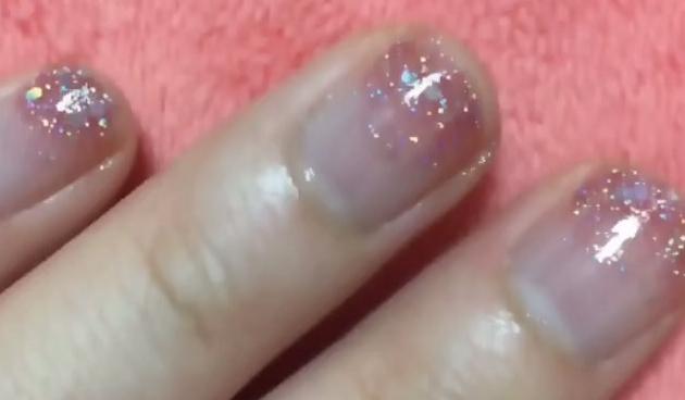 「ポリッシュが乾いてしまって、馴染ませることができない」という場合は、境目にラメを投入すると◎ラメが境目を上手くカバーしてくれます。