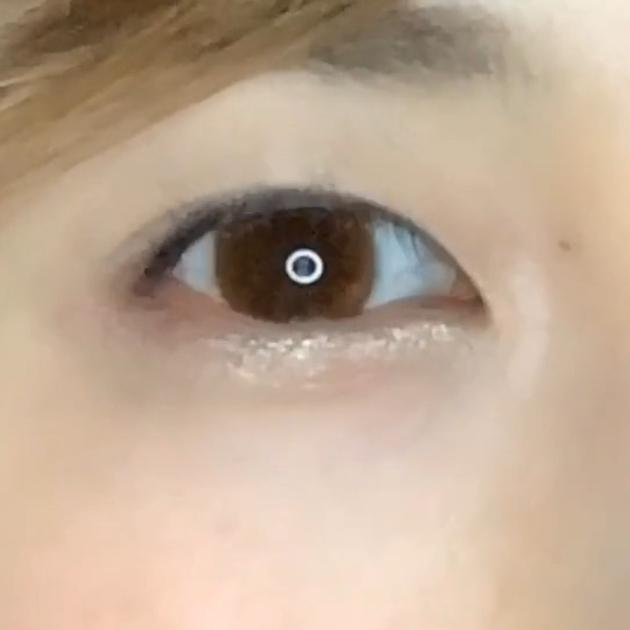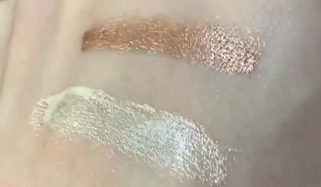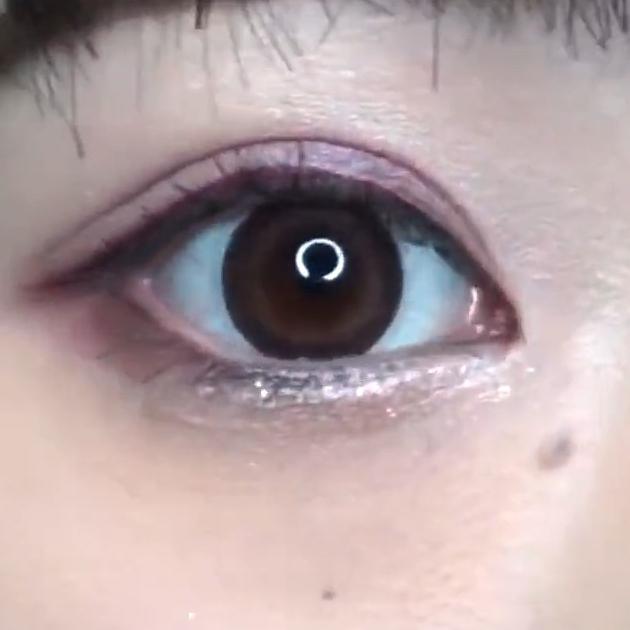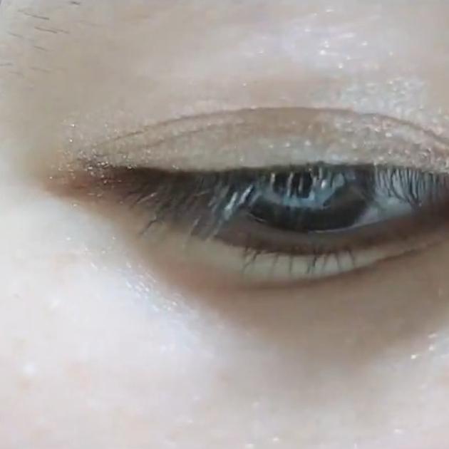 シアーブラウンの仕上がりはこんな感じ。ラメがぎっしりで、メタリックアイシャドウのようにも見えます。パーティーメイクなどにもおすすめ!