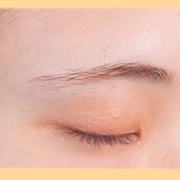 シアーオレンジの仕上がりはこんな感じ。ゴールドラメがかわいく、アイシャドウとして使うときはメインカラーとしてアイホール全体にのせるのがおすすめです!