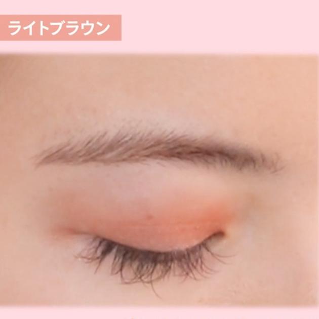 ライトブラウンの仕上がりはこんな感じ。目もとに奥行きを与えて、上品に仕上げてくれるブラウンです。忙しい朝に単色使いもおすすめ!