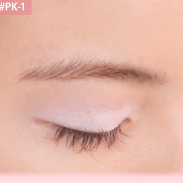 ライトピンクの仕上がりはこんな感じ。ホワイトに近いパール感のあるピンクで、ハイライトとしても活躍します。お手持ちのアイシャドウに重ねるのもおすすめですよ!
