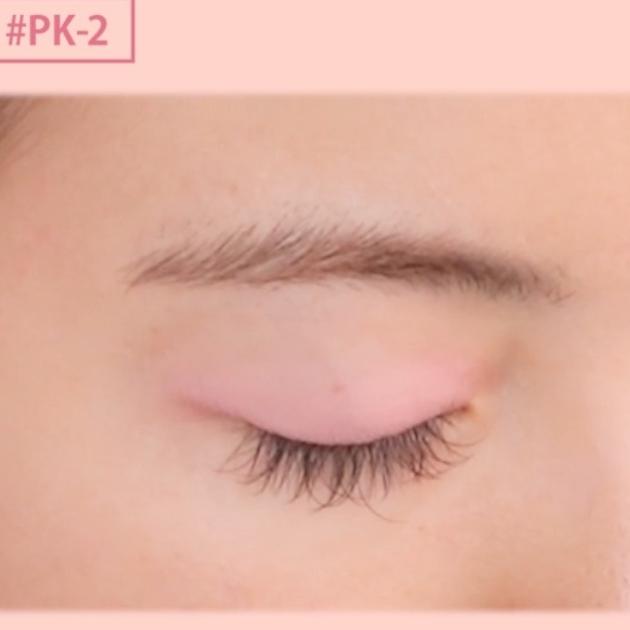 マットピンクの仕上がりはこんな感じ。目元に愛らしい血色感を演出してくれます。ピンクアイメイクのベースカラーに仕込むのがおすすめです◎