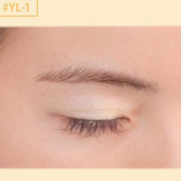 ライトイエローの仕上がりはこんな感じ。パッと明るい目元へ導いてくれるカラーです。普段のブラウンメイクとイエローを組み合わせれば、きらめきがプラスされますよ♪