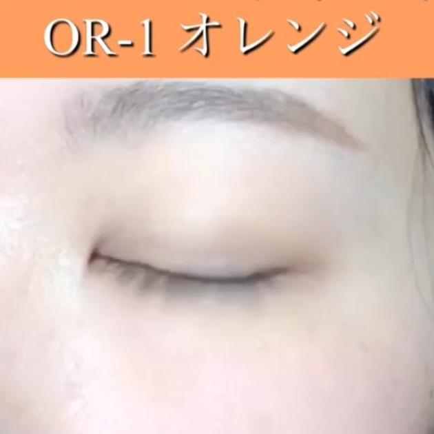 オレンジの仕上がりはこんな感じ。真ん中のオレンジの発色がよく、手軽にオレンジメイクが楽しめます。よりはっきり発色させるために、指のスライドを繰り返して重ね塗りするのがおすすめですよ!