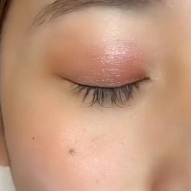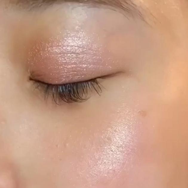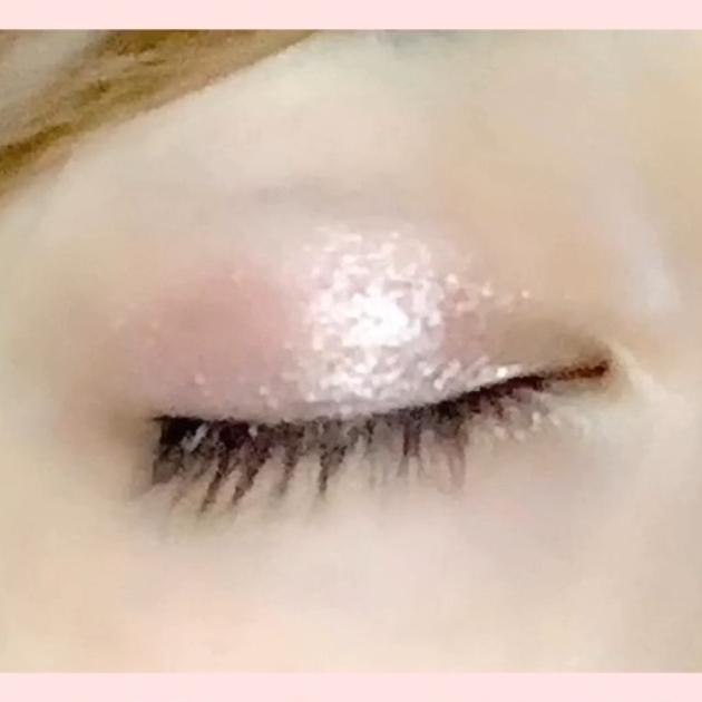 ペールピンクの仕上がりはこんな感じ。アイシャドウの下地としておすすめのカラーです。シルバー、ゴールド、ピンクなどに輝くラメがかわいく、ハイライトとしても使用できます♪