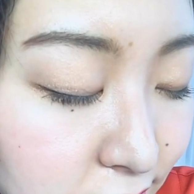 シャンパンベージュの仕上がりはこんな感じ。ラメ感ツヤ感だけ楽しみたいという方にもおすすめのカラーです。涙袋などにぴったり!