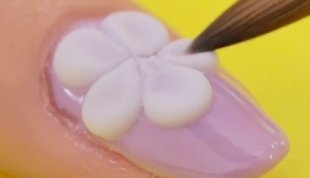 爪の表面にミクスチュアをのせ、花びらを重ねながら大花を作っていきます。ミクスチュアが固まらないうちに形を形成してくださいね◎
