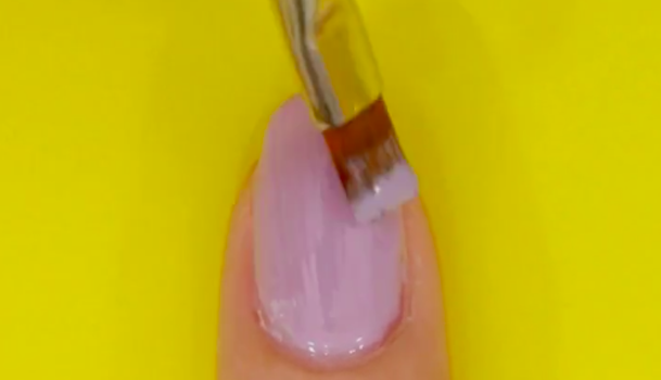 次に、パープルベージュのジェルを爪全体に塗ります。ホワイトの色味が入っているものはムラが目立ちやすいので注意しながら二度塗りしてくださいね。塗れたら、硬化させ、余分な未硬化ジェルを拭き取りましょう。