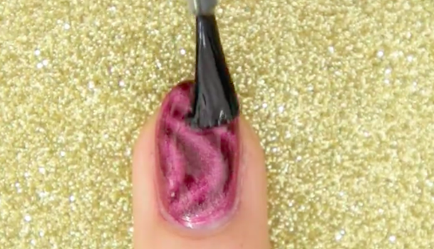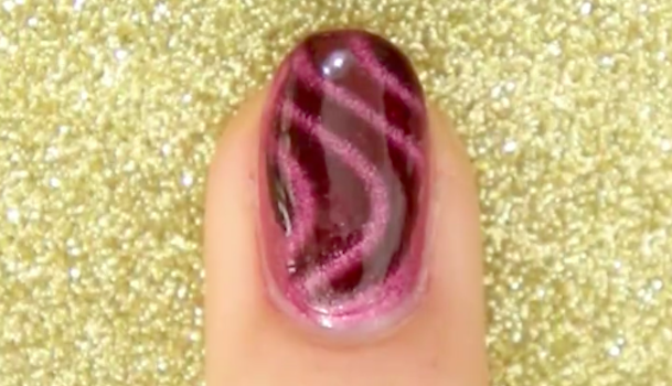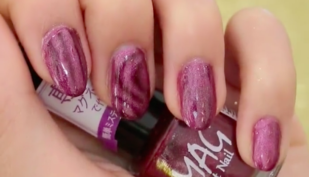 手順1が乾く前に「MAG ART NAIL ストリーム」を爪に近づけ、模様を作りましょう。近づけるものによって絵柄が変わるのが面白いですね。クリップ内では他にも「MAG ART NAIL スカー」「MAG ART NAIL キャッツアイ」を使用しています。