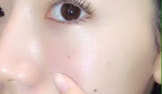 まずリキッドファンデーションを半プッシュから1プッシュくらい目の下に置きます。直接ファンデーションを乗せるのは目の下だけでOK!色々なところにつけると厚塗り感が出てしまいます。