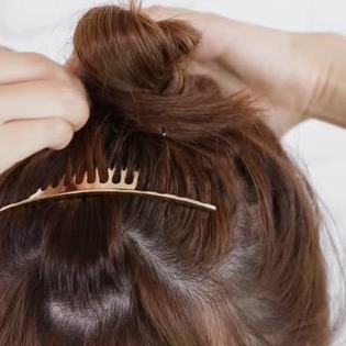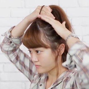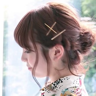 最後は前髪をバレッタやピンでとめます。小さなポンパドールをつくるイメージです◎
