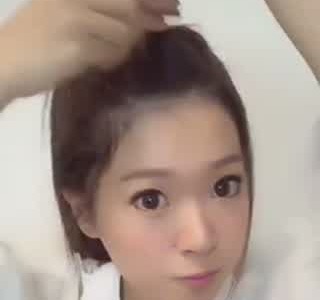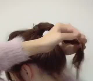 残っている髪の毛を三つ編みの上で束ねて、1つに結んでくるりんぱをします。