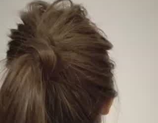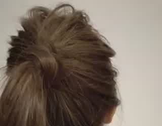 毛束を少しとり、ゴムの結び目にまきつけるだけでゴム隠し完了!