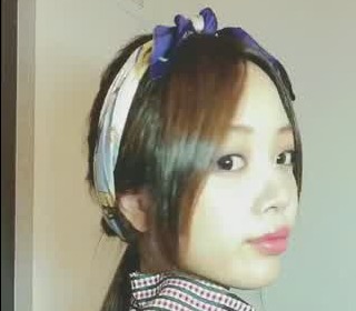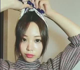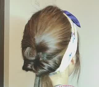 襟足側にスカーフを引っ掛け、頭の上でスカーフを結びます。