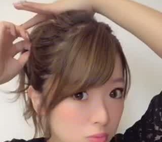 顔周りの後れ毛を出しながらトップを崩します。