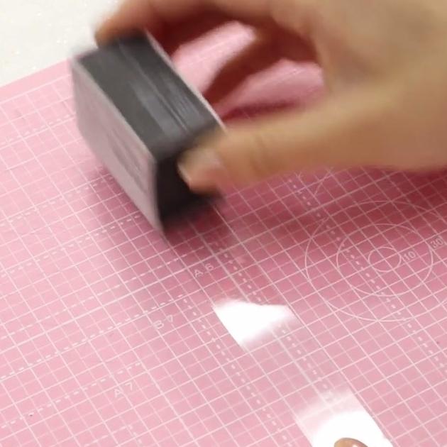 ヤスリでプラ板の表面をこすります。傷がつきすぎないように細かい目の方を使いましょう!