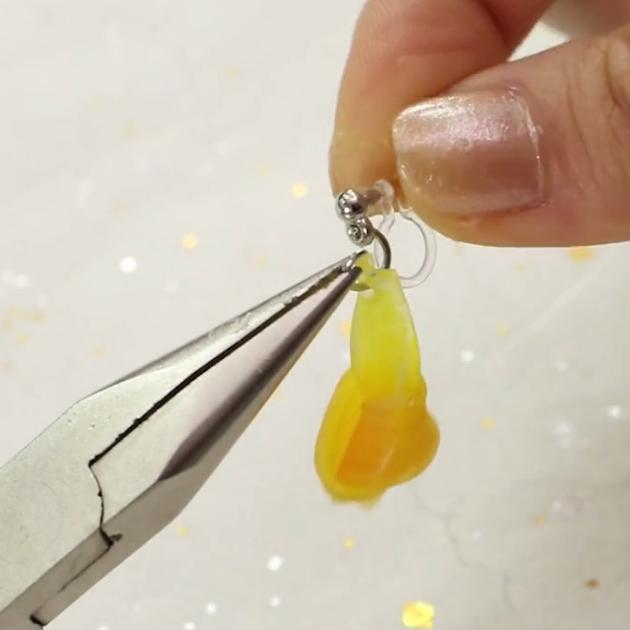 手順4で開けた穴に丸カンとアクセサリーパーツを通せば完成です!