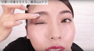 アイシャドウ2色を使った横長eyeの完成です。先ほどの縦長eyeとはかなり印象が違いますよね。目元を横に大きく切れ長に見せたい場合は、横長eyeをぜひやってみてください♪