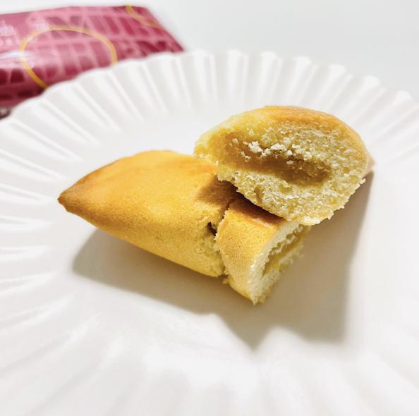バター風味の生地で、ミルク餡を包み、高温短時間でふんわりしっとり焼き上げられています。生地はほろほろとしていて崩れやすいです。