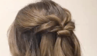 いつものハーフアップにくるりんぱを2回プラスするだけの、簡単ヘアアレンジ。
