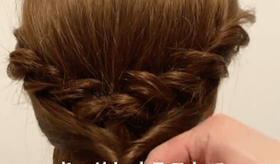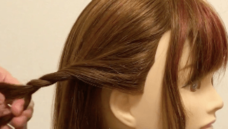 左右に後れ毛を残した状態で、横の毛を交差させていきます。これを両側で行ってください!