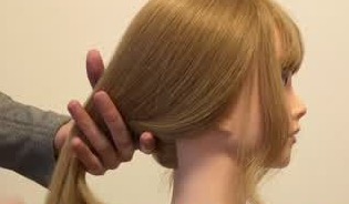 きれいにとかすことができたら、片手で髪の毛をひとつにまとめ、しっかり持ちます。