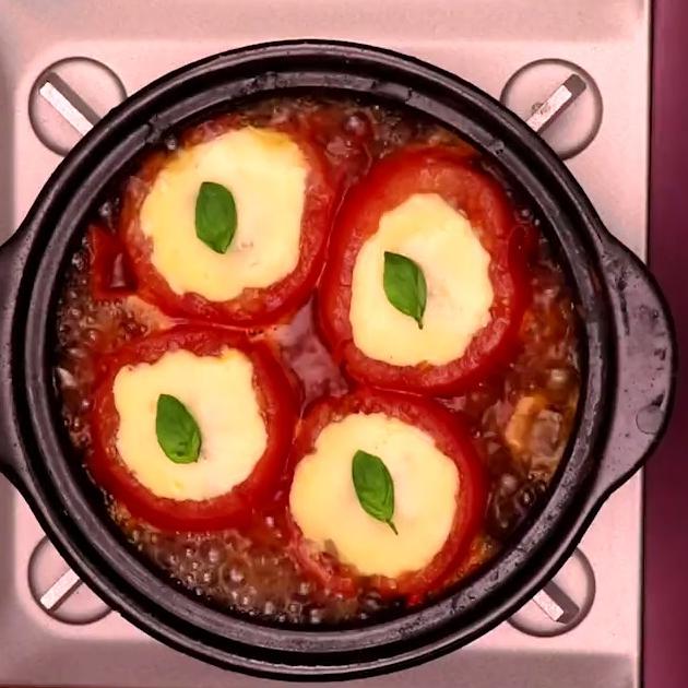 トマトにハンバーグを入れて煮込む鍋レシピです。ハンバーグを焼かないので油少なめでヘルシー。トマトの栄養もしっかりとれますよ。