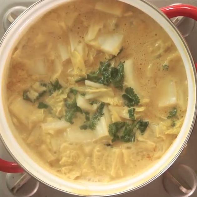 パクチー好き必見の、パクチーをふんだんに使ったエスニック鍋。取り分けてからさらにパクチーをかけるのがポイントです。ココナッツオイルとチリパウダーで気分は南国♪
