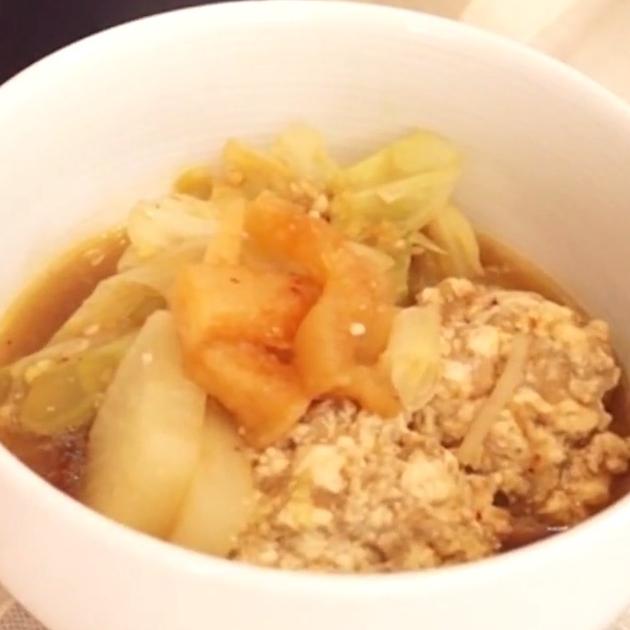 たっぷりの野菜で作る甘酒チャウダー鍋レシピ。豚ひき肉に豆腐を混ぜることでふんわりした肉団子が作れます。さっぱり食べたいという方は鶏ひき肉も◎