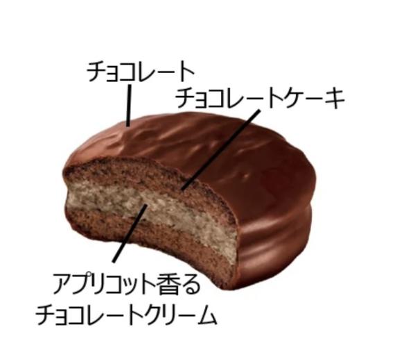 アプリコット香るチョコクリーム入りのチョコケーキがチョコレートでコーティングされているとのこと。