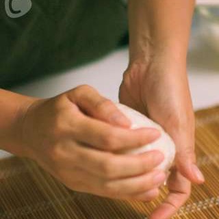 いつものおにぎりをにぎるときのようにキュっとにぎらないで、包むように形を整えると◎
