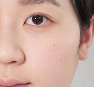 パール入りホワイトのハイライトを使用した仕上がりはこんな感じ。ハイライトスティックよりもパール感がナチュラルなので肌によく馴染んでいます。