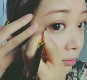 アイラインを控えめにするのがヌーディーメイク。細く薄く引くのが◎目尻のラインも短めにしましょう。