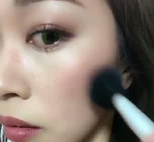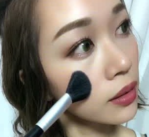 チークは斜めに入れるのがポイント。ブラシを放射線状に動かしてぼかしていきましょう♪そうすることで、ナチュラルながらも大人っぽいヌーディーチークに仕上がりますよ。