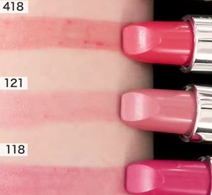 418番を下地として塗り、121番を重ねるとgood。きれいなヌーディーリップが出来上がります♪